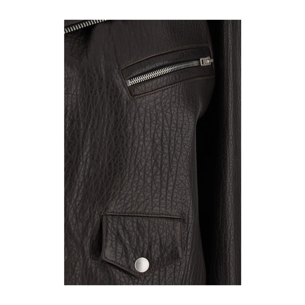 Upgrade je stijl met deze Acne Studios Dark Brown Crop Biker Jacket met klassieke revers, gemaakt van leer voor vrouwen.