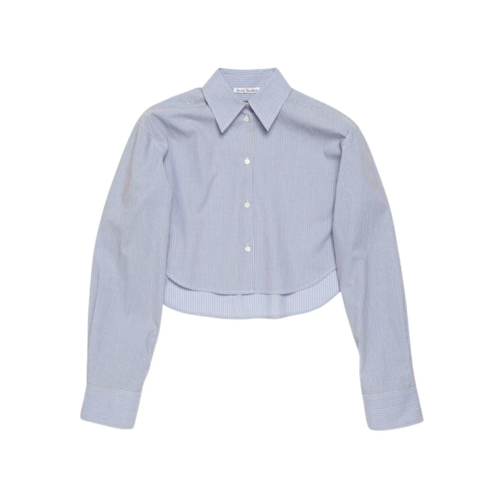 Kort Shirt uit de exclusieve collectie van de gerenommeerde ontwerper Acne Studios is de quintessence van eigentijdse elegantie. Gemaakt van lichtgewicht, katoenen stof, is het de perfecte keuze voor vrouwen die de combinatie van comfort met verfijnde stijl waarderen. Het oversizede shirt, reikend tot aan de taille, verrukt met een subtiel patroon van kleine, horizontale strepen in blauwe en witte kleuren. De klassieke knoopkraag en wijde manchetten voegen klasse en elegantie toe. Een zwarte inscriptie is geplaatst op de achterkant.