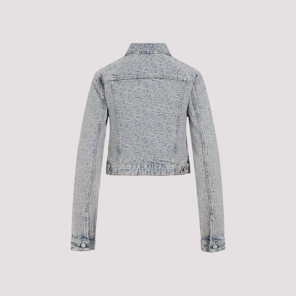 Upgrade je denim look met deze Acne Studios lichtblauwe monogram jacquard denim jas. Voorzien van een puntige platte kraag, lange mouwen met knoopmanchetten, twee borstflapzakken en verstelbare taillebanden aan de achterkant. Deze cropped jas heeft een knoopsluiting aan de voorkant en meet Borst: 86, 0 cm, Mouwlengte: 65, 0 cm, Lengte: 47, 0 cm, Taille: 82, 0 cm. Perfect voor de modebewuste vrouw.