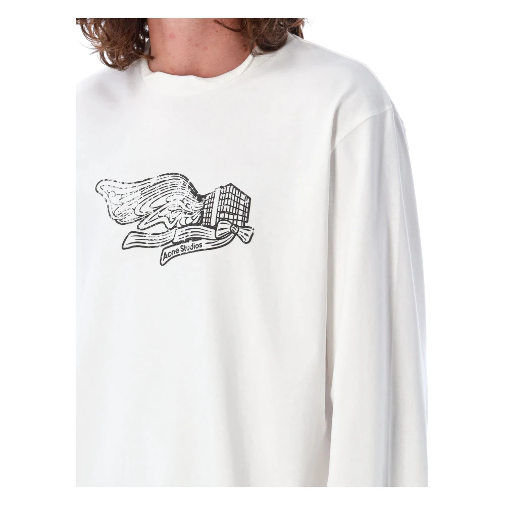 Verhoog je stijl met het Acne Studios HQ t-shirt in Optic White. Gemaakt van 100% katoen, heeft dit losse t-shirt een ronde hals met een geribbelde kraag, lange mouwen en een unieke grafische print aan de voorkant. Perfect voor dagelijks gebruik, straalt dit shirt een coole en eigentijdse uitstraling uit. Model is 1, 90 m en draagt maat L.