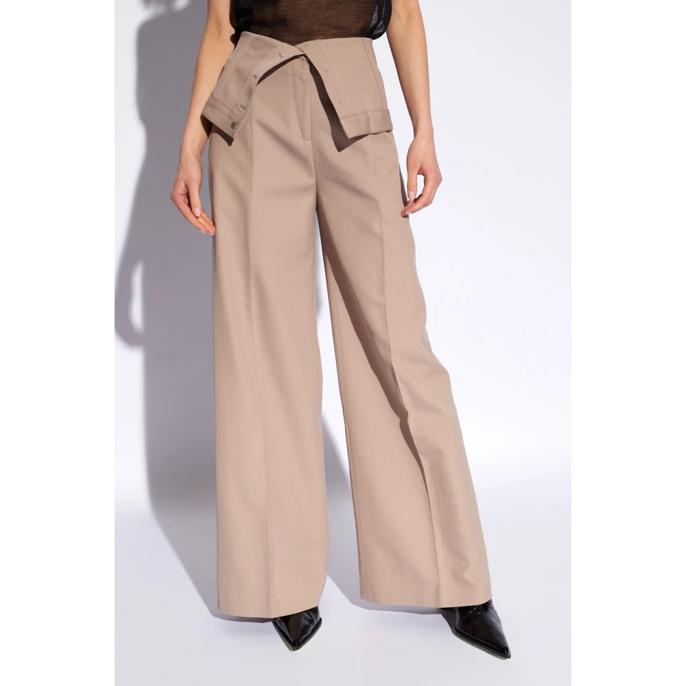 Grijs-beige plooi-front broek van Acne Studios. Gemaakt van een wolmix, dit paar valt met wijde pijpen en heeft een ritssluiting met een knoop en haken, twee steekzakken en een uitgevouwen taillebandconstructie. Modelmaten Hoogte: 176 cm Buste: 85 cm Taille: 60 cm Heupen: 89 cm Model draagt maat: 36
