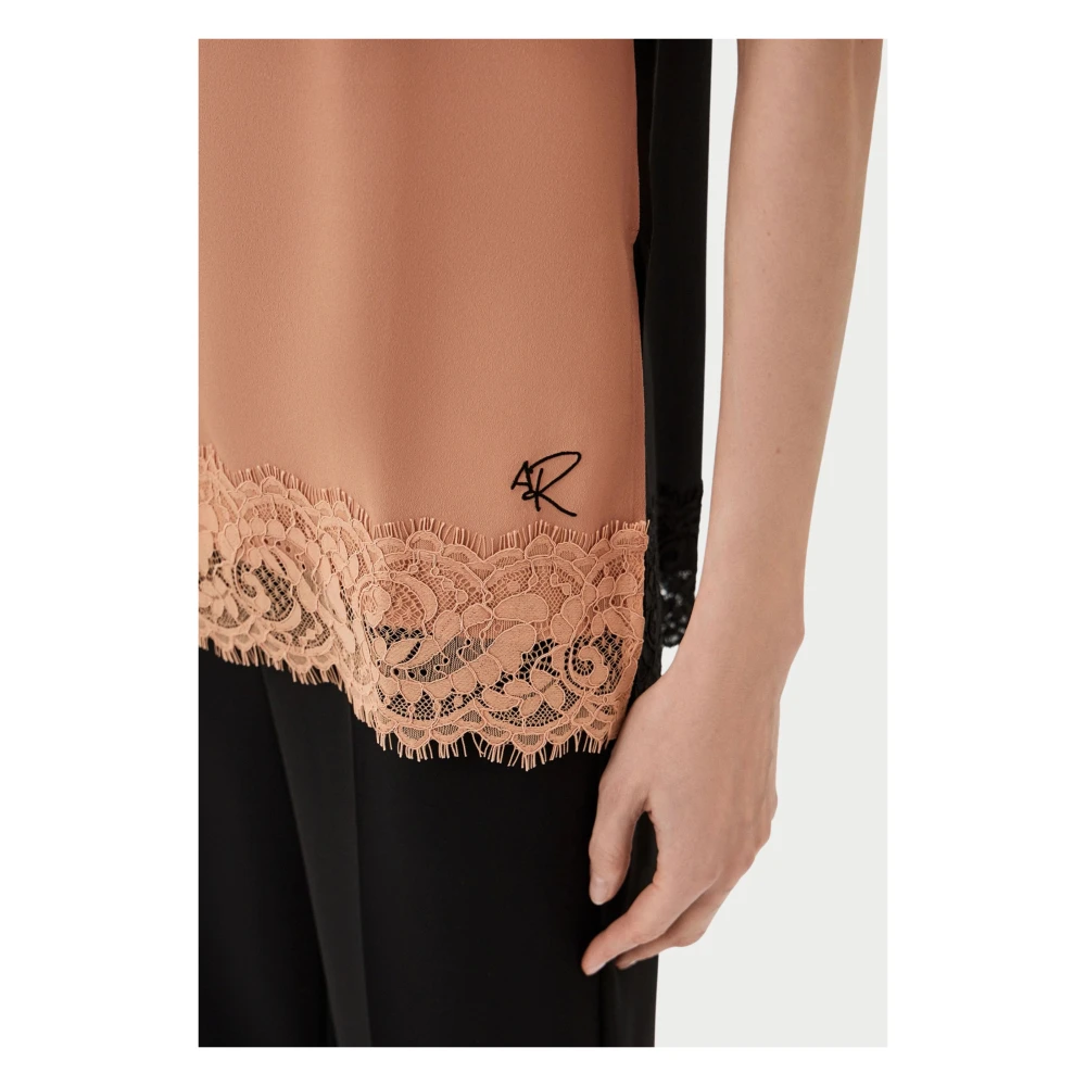 Upgrade je garderobe met de essentile Top Twinset Actitude, een veelzijdig stuk dat gemakkelijk te combineren is. Omarm de charme van deze vloeiende viscose top, met een rechte snit, delicate chantilly kanten afwerking aan de zoom en halslijn, dunne bandjes en een logolabel aan de achterkant. Materiaal: 100% polyester. Verzorging: Volg de wasinstructies