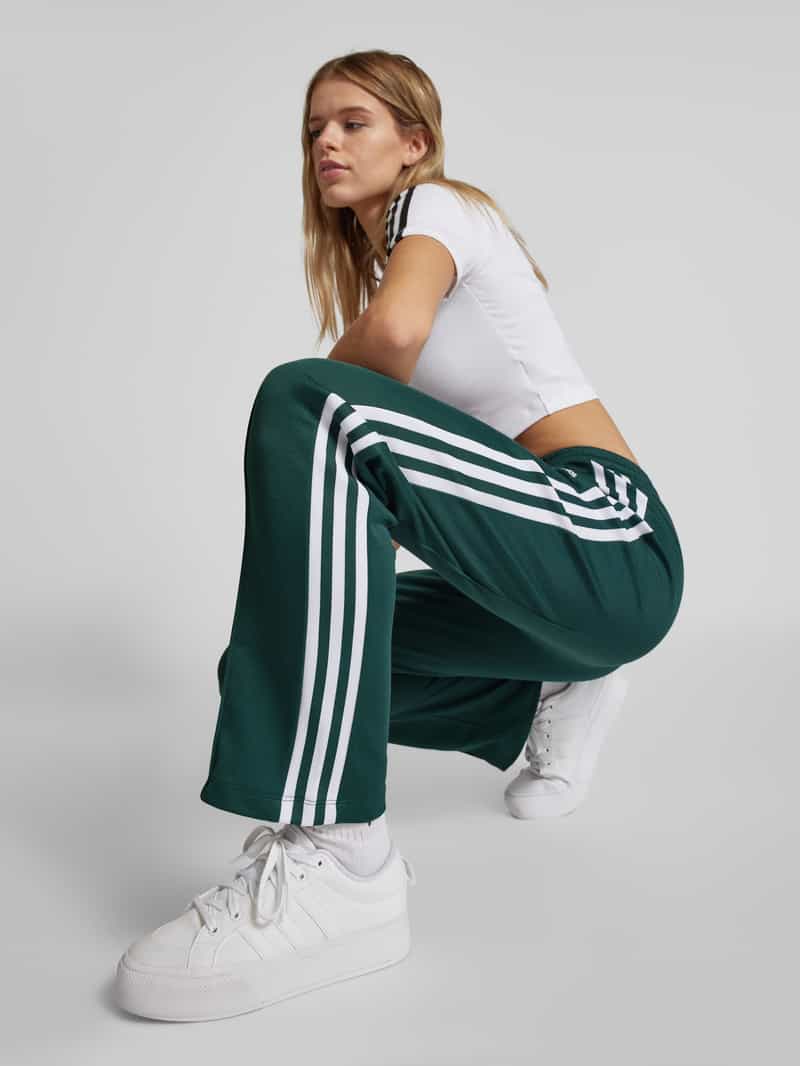 Sweatpants van adidas Originals voor dames. Katoenmix. Recht model. Model 'BECKENBAUER'. Elastische band. Sierrand. Siernaden. Ritszakken. Labelprint. Binnenbeenlengte bij maat S: 79 cm