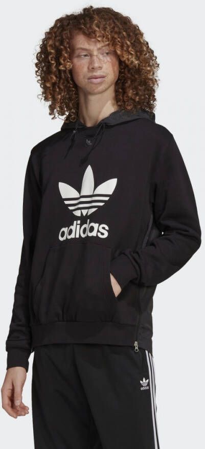 Zwarte sweatpants van Adidas Originals. Strakgetrokken met trekkoorden in de taille, toont dit paar witte Trefoil-logo borduursel aan de voorkant, twee ritszakken, geribbelde boorden en de kenmerkende witte drie strepen van het merk. Afmetingen van het model Lengte: 193 cm Borst: 95 cm Taille: 82 cm Heupen: 93 cm Het model draagt maat: M