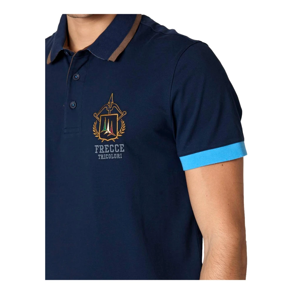 Upgrade je casual garderobe met deze Aeronautica Militare polo shirt. Gemaakt van stretch piqu stof, heeft deze polo een opvallend kleurcontrast ontwerp dat het geborduurde embleem van de Frecce Tricolori op de borst benadrukt. Het jacquard logo van Aeronautica Militare is subtiel gedrukt op de kraag, wat een onderscheidende touch aan het stuk toevoegt. Compleet met geribbelde kraag en manchetten, biedt deze polo een reguliere pasvorm voor een comfortabele pasvorm.