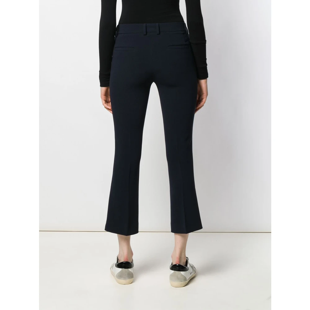 Upgrade je garderobe met Alberto Biani's trompetbroek in een prachtige blauwe stretchstof. Deze cropped broek heeft een knoop- en ritssluiting, riemlussen, meerdere zakken en een persvouw langs het midden. Ongevoerd voor een comfortabele pasvorm. Verkrijgbaar in Internationale Standaard maten, met een normale taille en normale zoom. Valt op maat. Model draagt maat S.
