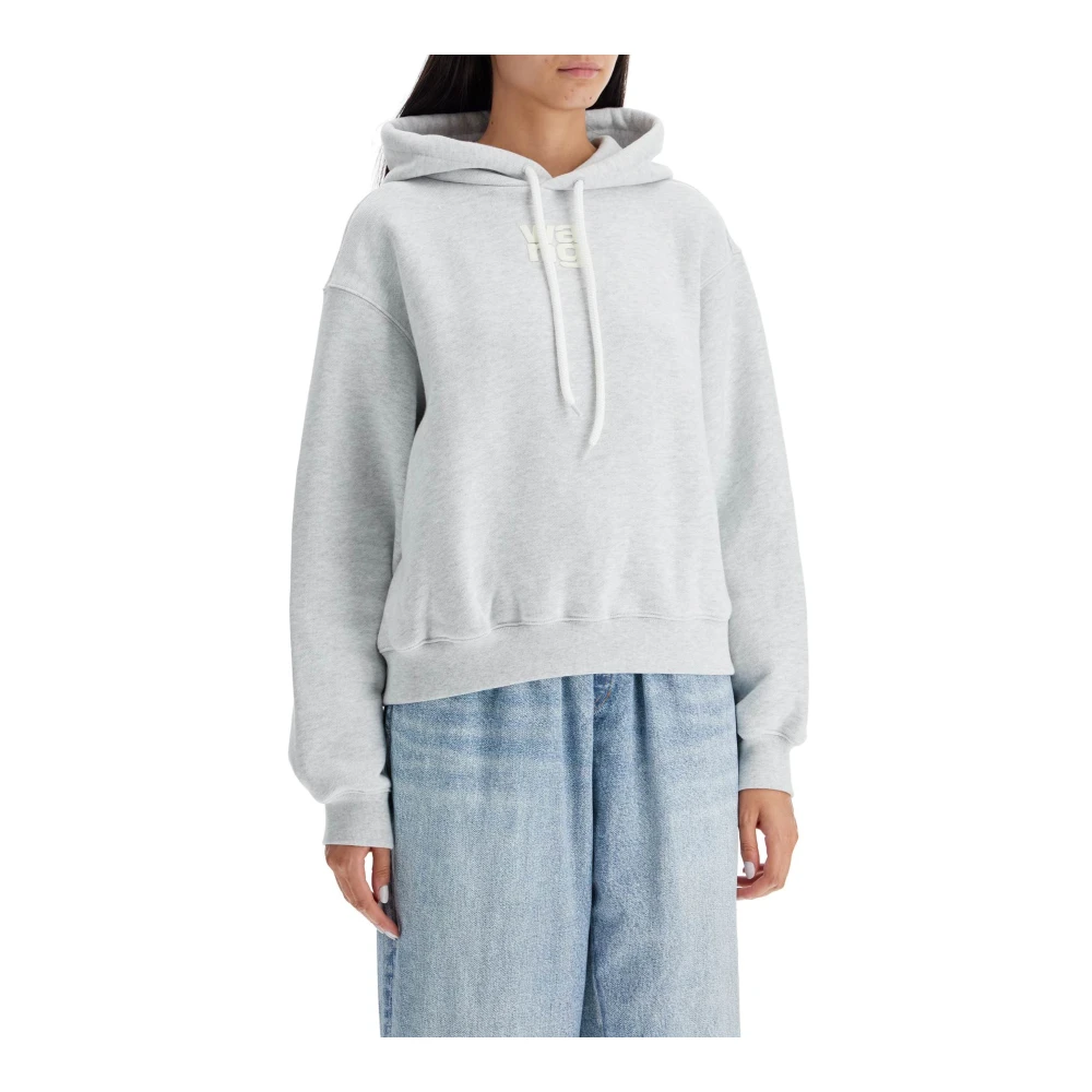Upgrade je casual stijl met deze Alexander Wang hoodie voor vrouwen. Met een losse en boxy pasvorm, trekkoord capuchon en geribde manchetten en zoom, is deze hoodie gemaakt van puur katoenen Franse badstof met een reliflogo op de borst. Perfect voor een relaxte maar chique look. Model is 177 cm lang en draagt maat XS.