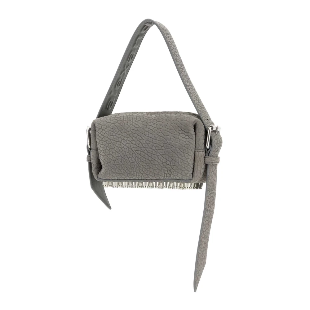Upgrade je stijl met deze Alexander Wang Grey Nabuk Small Ricco Schoudertas. Perfect voor de moderne vrouw, deze crossbody tas heeft een strak ontwerp met afmetingen van B22 x H12 x D9 cm. De verstelbare schouderband zorgt voor veelzijdige styling, met een minimale lengte van 48 cm en een maximale lengte van 60 cm.