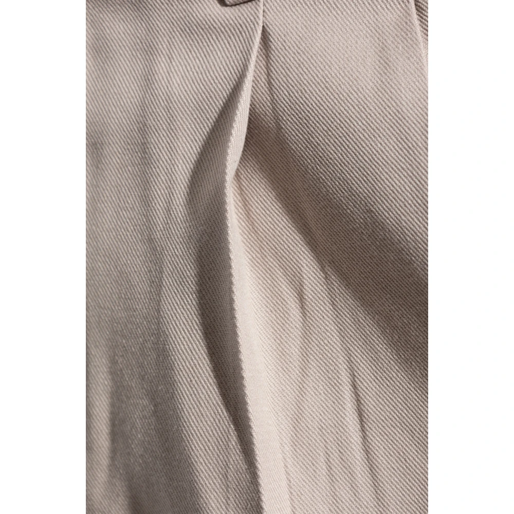 Ontdek een uitzonderlijke stijl met Beige Tallis Trousers van All Saints, die elegantie harmonieus combineren met een casual karakter. Deze broek heeft een klassieke, rechte pasvorm met licht toelopende pijpen, afgewerkt met manchetten die een vleugje subtiele finesse toevoegen. Het materiaal waarvan de broek is gemaakt is een hoogwaardige mix van katoen en wol, wat niet alleen duurzaamheid garandeert maar ook een delicate glans toevoegt die een uniek karakter aan het geheel geeft. Het fijn geweven patroon van het materiaal benadrukt de degelijkheid van het vakmanschap. Uitzonderlijke constructiedetails, zoals voorplooien, een klassieke knoop- en ritssluiting, en twee achterzakken met enkele smalle kleppen, maken de Tallis broek synoniem met elegantie. Daarnaast voegen zijzakken en een kleine plooi boven de achterzak aan de linkerkant functionaliteit en uniek karakter toe. Waarom DIT Product Kopen? * Universele beige kleur, ideaal voor verschillende gelegenheden. * Elegante maar toch casual stijl. * Hoogwaardig materiaal met een delicate glans. * Functionaliteit dankzij vier zakken. * Unieke constructiedetails die het individuele karakter van het product benadrukken. Models Metingen Hoogte: 193 cm Borst: 95 cm Taille: 82 cm Heupen: 93 cm Model draagt maat: 32
