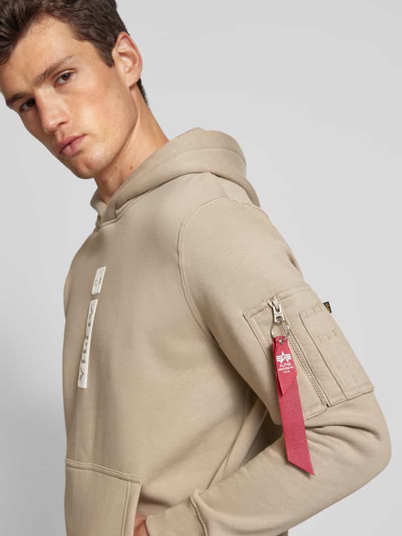 Hoodie voor heren van Alpha Industries. Katoenmix. Regular fit. Ritszak op de mouw. Buidelzak. Ruglengte bij maat M: 66 cm. Mouwlengte bij maat M: 64 cm