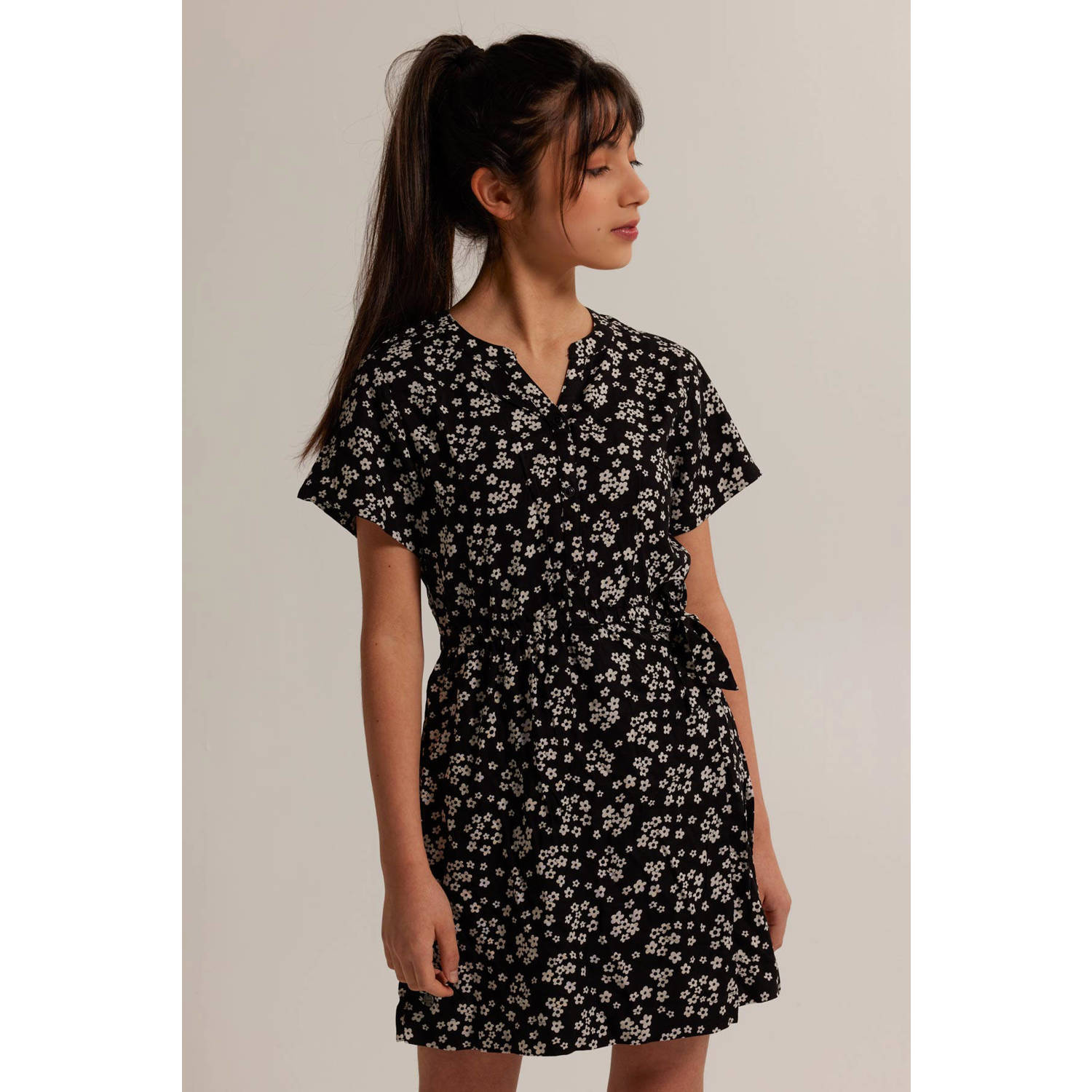 Deze meisjesjurk van America Today is gemaakt van viscose en heeft een bloemenprint. Het model beschikt over een knoopsluiting. De jurk met korte mouwen heeft verder een V-hals