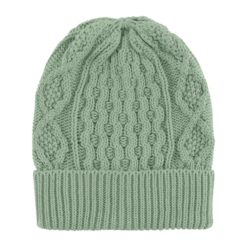 Damesbeanie van American Vintage. Materiaalmix met alpaca. Brede omslag. Model 'EAST'. Structuurpatroon. Ribboorden
