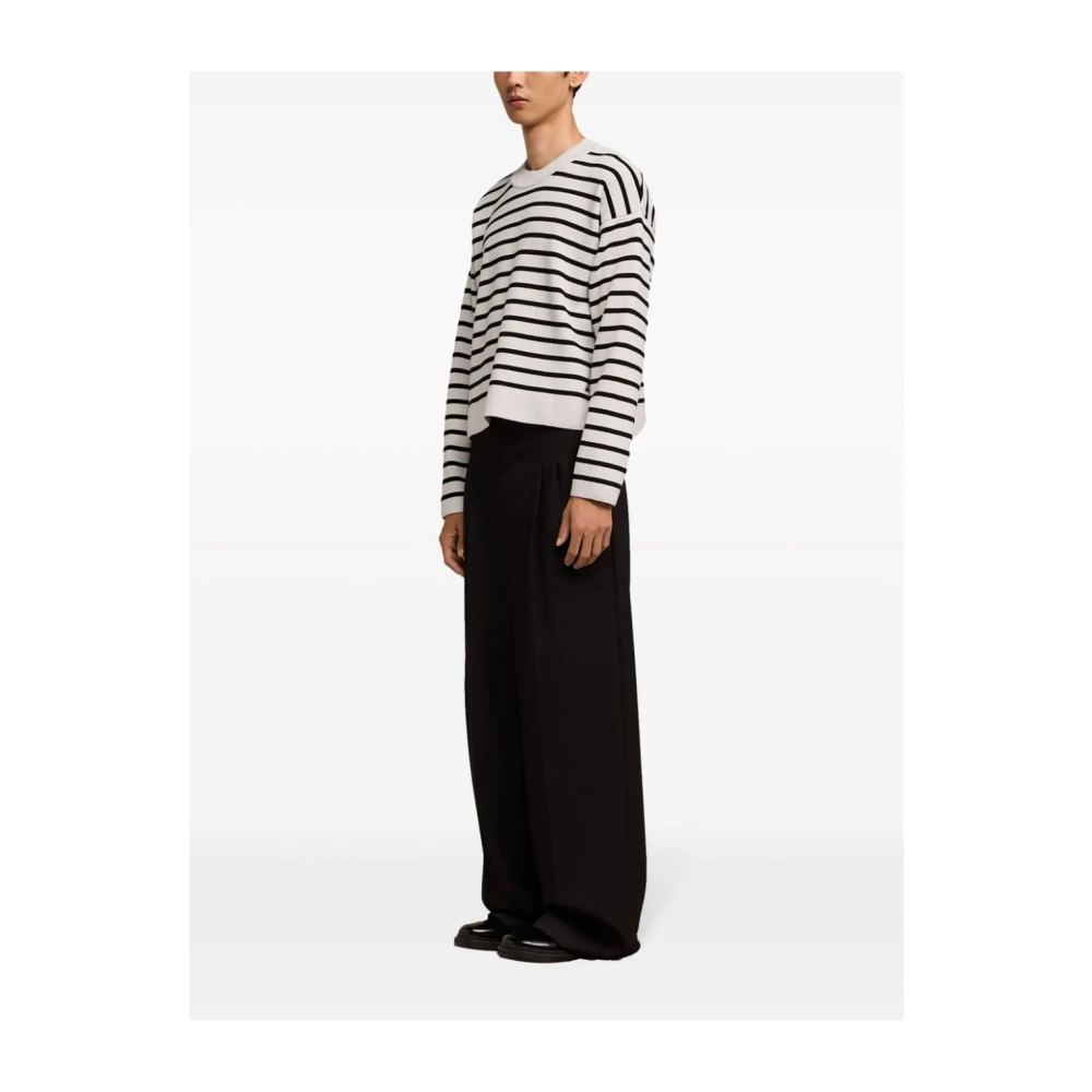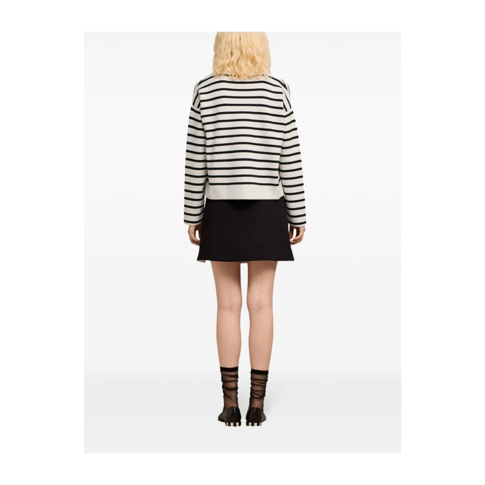 Ami Paris Gestreepte Biologisch Katoen-Wollen Trui White Dames