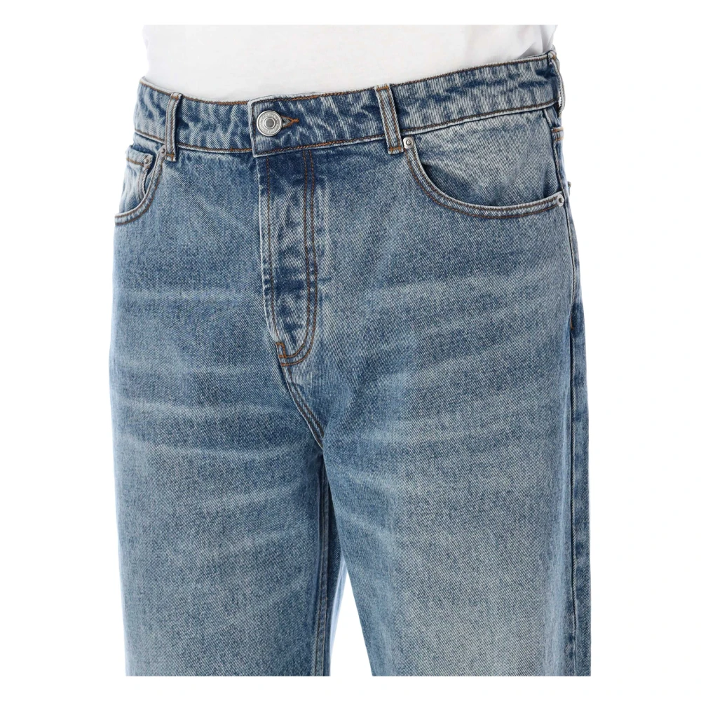 Upgrade je stijl met deze Ami Paris heren jeans in het blauw met wijde pijpen en een logopatch op de achterkant in denim