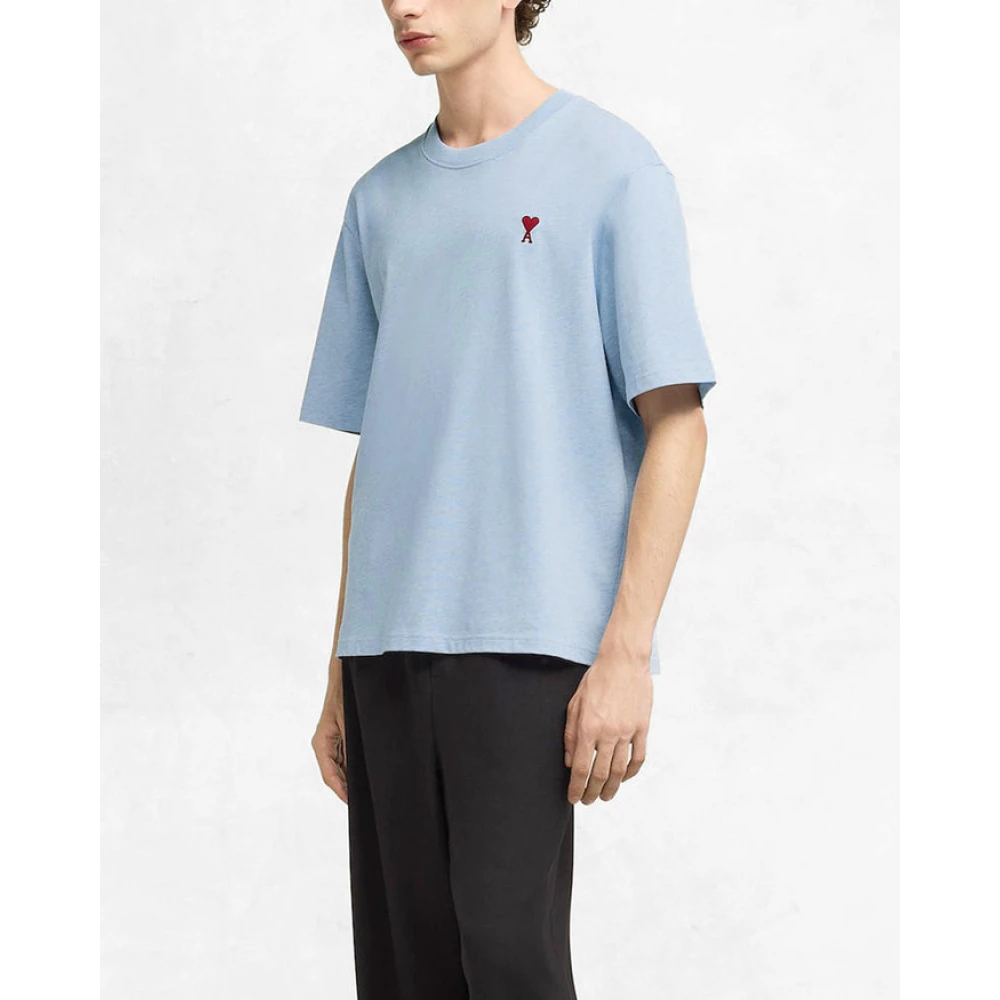 Upgrade je casual stijl met dit lichtblauwe geborduurde T-shirt van Ami Paris. Boxy fit voor een relaxte uitstraling.