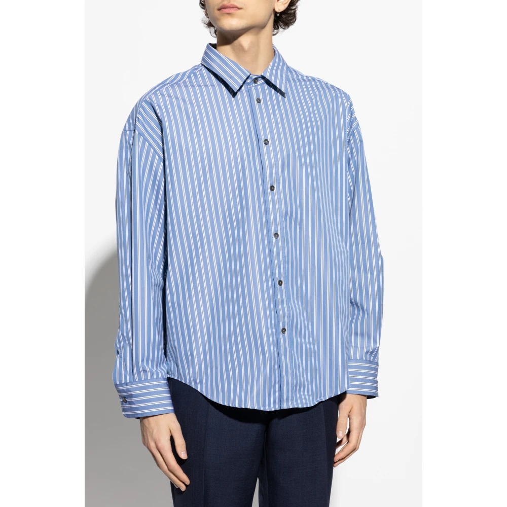 Ami Paris herencasual overhemd met klassieke kraag, lange mouwen, knoopmanchetten en blauwe knoopsgatdetails aan de voorkant. Gemaakt van 100% katoen.