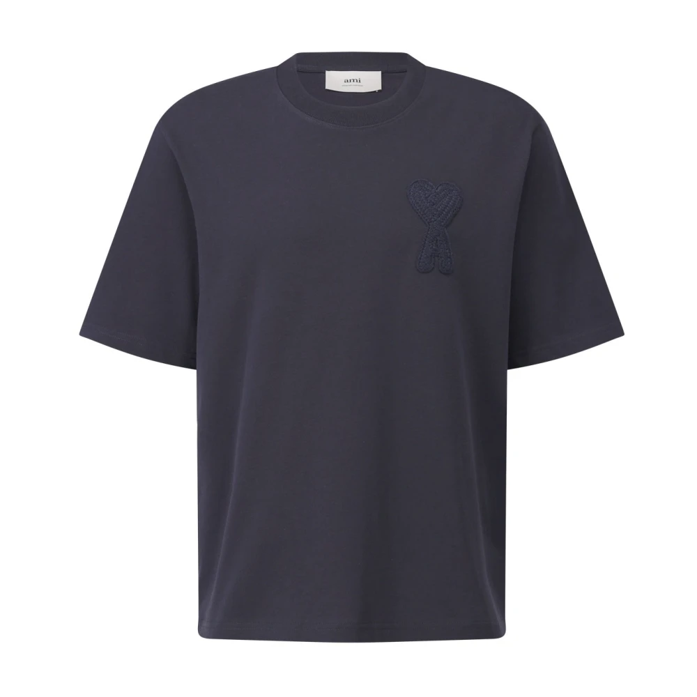 Dit T-shirt van Ami Paris, gemaakt van comfortabel katoenen stof, biedt tijdloos comfort en een losse, rechte pasvorm voor een casual uitstraling. De geribbelde ronde hals zorgt voor een perfecte pasvorm, terwijl het geborduurde gevlochten logo op borsthoogte een speciale touch toevoegt. Ideaal voor dagelijks gebruik en veelzijdige styling.