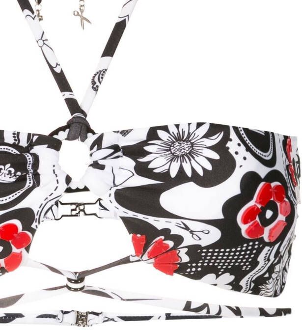 Gebroken wit, zwart, helderrood, all-over bloemenprint, ringdetail, sweetheart-hals, halternek striksluiting, stretch design en mid waist. Zwemkleding moet over je eigen kleding worden aangepast..