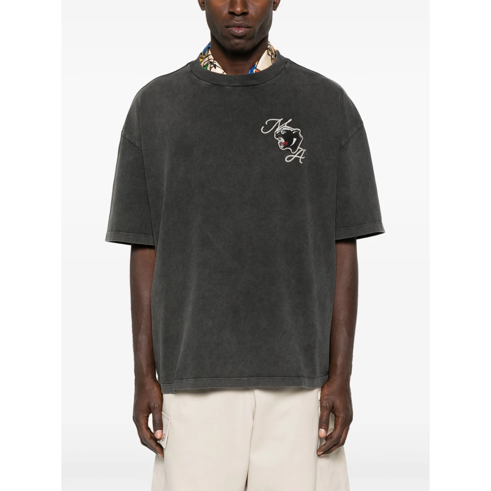 De Amiri geborduurde T-shirt met ronde hals in het zwart biedt een stijlvolle touch met zijn gedetailleerde borduurwerk op de borst en rug. Gemaakt in Itali, combineert dit T-shirt comfort en design, perfect om je casual garderobe te upgraden. Belangrijkste kenmerken: Zwart | 97% Katoen | 3% Elastaan | Ronde hals | Korte mouwen | Borduurwerk op borst en rug | Afmetingen en pasvorm: Valt op maat | Samenstelling en onderhoud: 97% Katoen | 3% Elastaan | Koud wassen in de machine, drogen op lage temperatuur