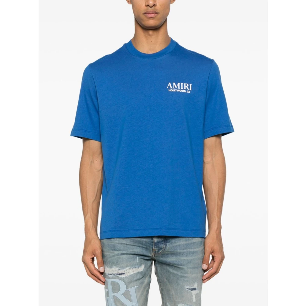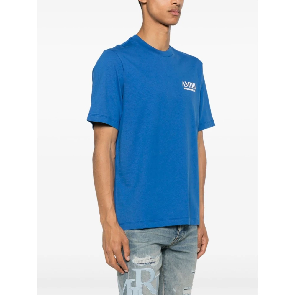De Amiri T-shirt met logo combineert klassiek design met opvallende branding, en is een veelzijdig kledingstuk voor elke garderobe. Gemaakt van premium 100% katoen, voor comfort en duurzaamheid. Belangrijkste kenmerken: Blauw | 100% Katoen | Ronde halslijn | Korte mouwen | Opvallend logo op de voorkant | Groot wit grafisch patroon op de achterkant | Subtiel zwart merklabel bij de halslijn | Afmetingen en pasvorm: Regular fit | Samenstelling en onderhoud: 100% Katoen | Machinewas koud, drogen op lage temperatuur