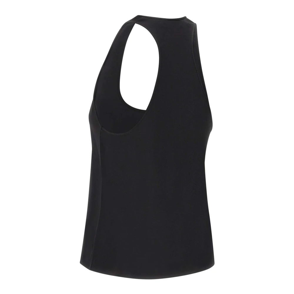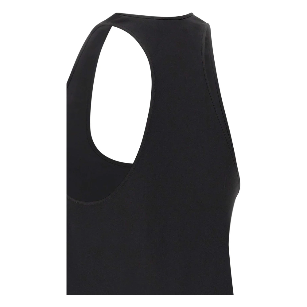 'Vloeibare satijn' dames top van Andamane. Deze zwarte mouwloze top heeft wijde armsgaten, een uitlopende zoom en een reguliere pasvorm. Gemaakt in Itali