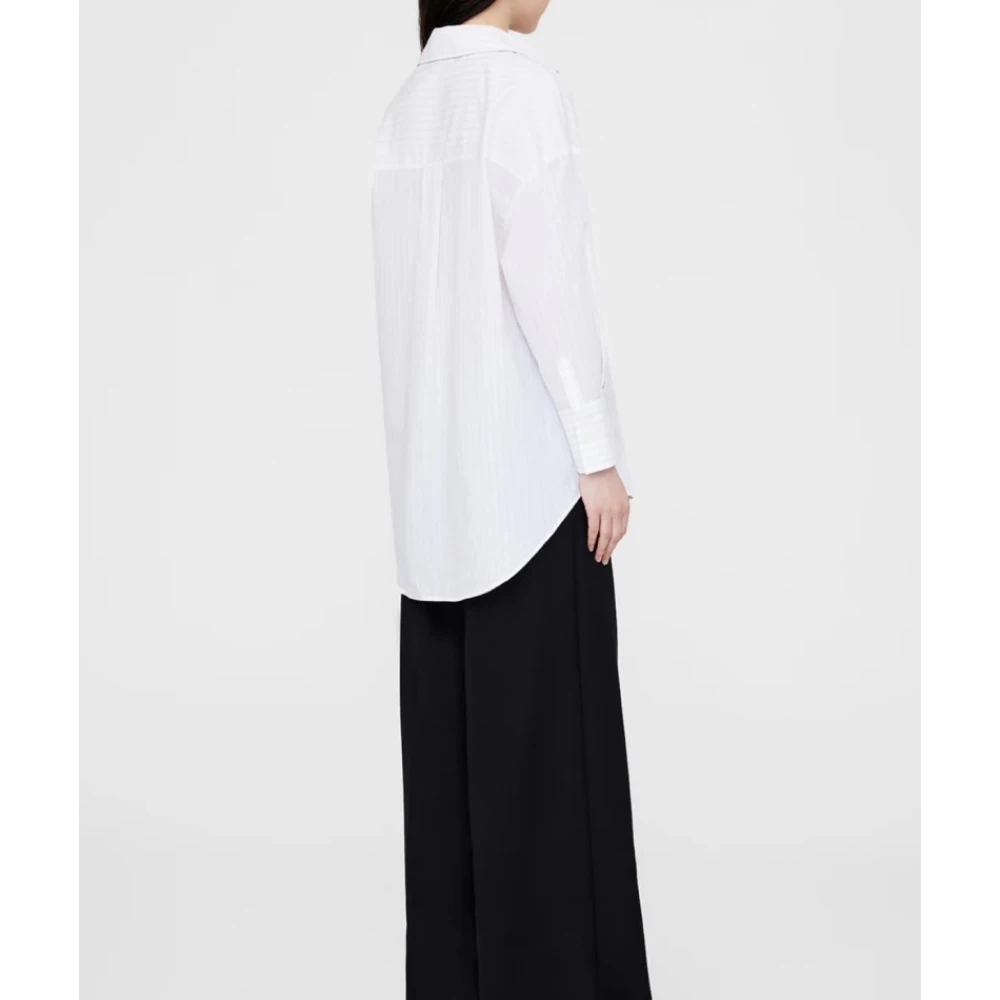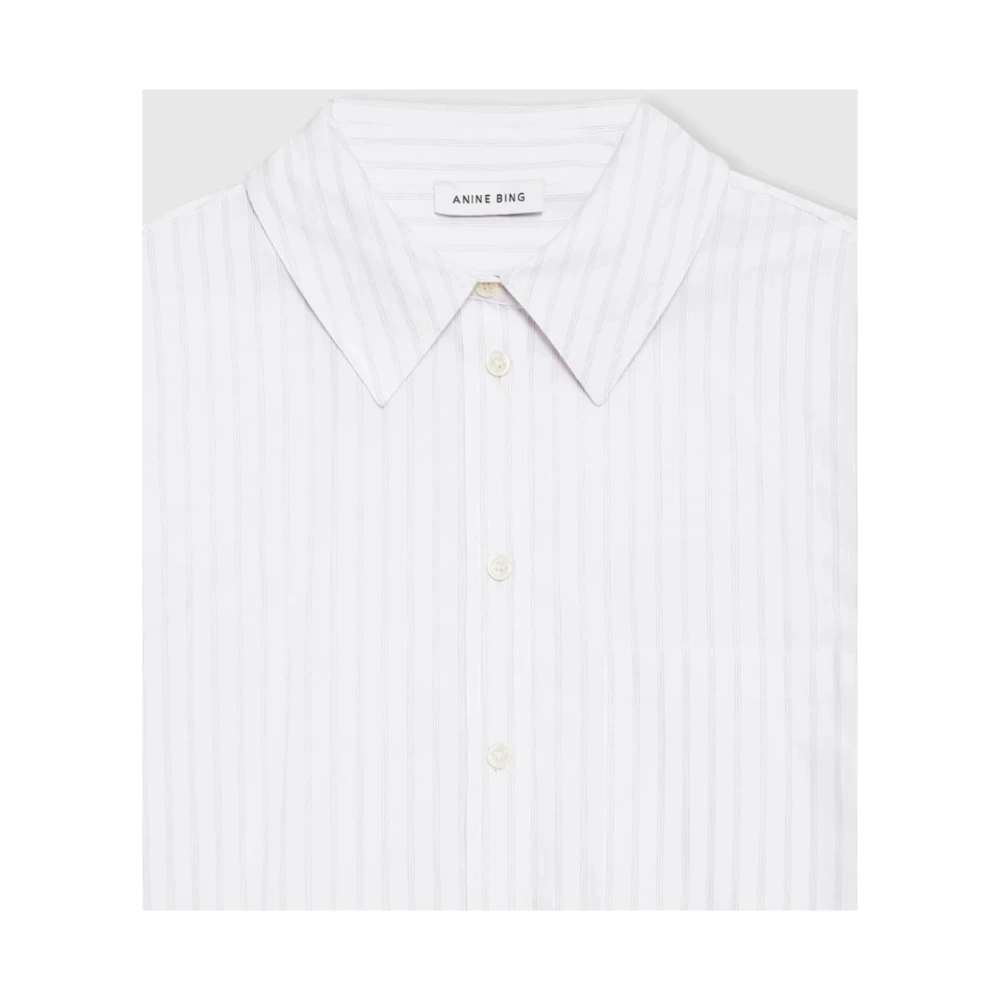 Anine Bing Mika gestreepte blouse. Knoopsluiting. Overhemdkraag. Franse mouwen. Multistreep ontwerp. Losse pasvorm. Samenstelling: 100% Katoen.