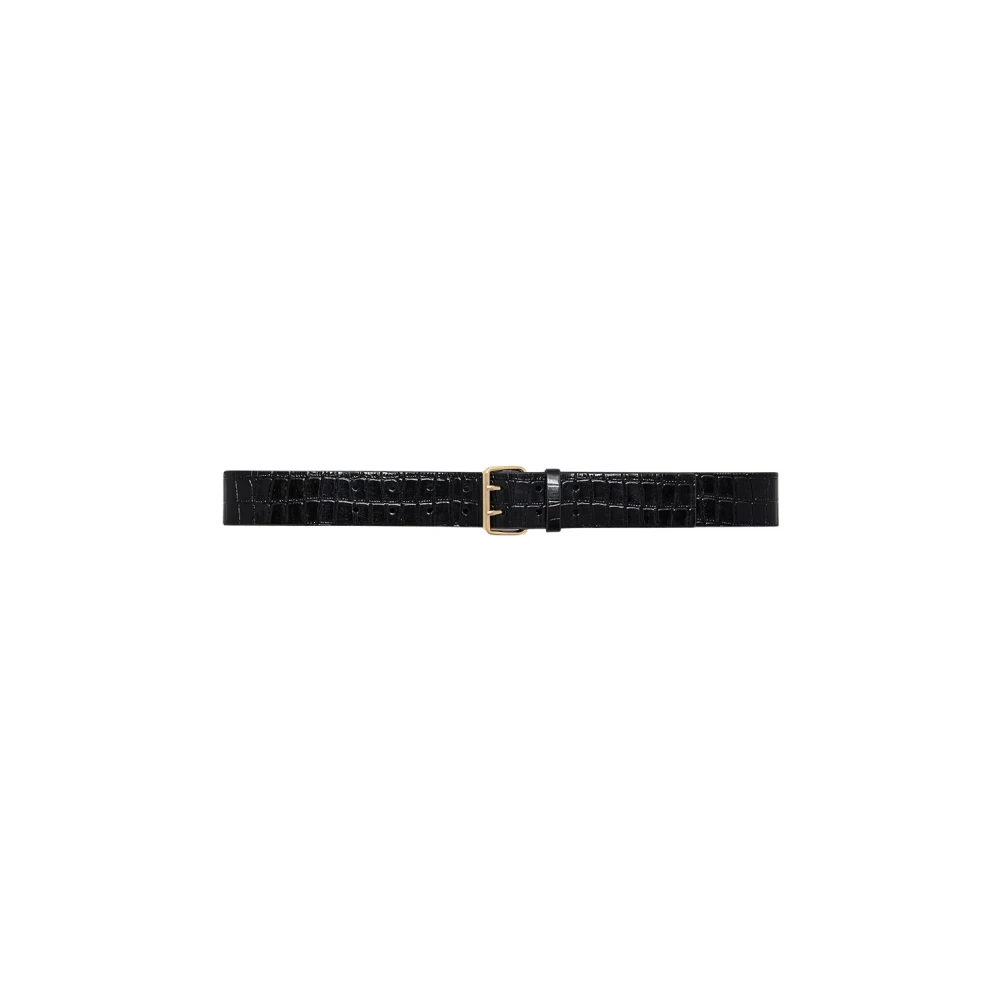 Anine Bing Krokodil reliëf leren riem met gouden gesp Black Dames
