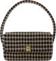 Zwart, bruin, pied-de-poule patroon, n rond handvat, twist-lock sluiting, goudkleurig materiaal, gegraveerd logo, flapsluiting aan de voorzijde, hoofdvak, binnenzak met ritssluiting en volledige voering.