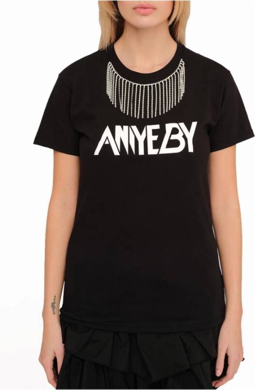 Stijlvolle T-shirt met ronde hals en kristallen versiering