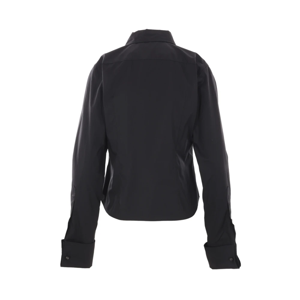 Upgrade je garderobe met deze zwarte katoenen poplin blouse van Ann Demeulemeester. Ontworpen voor de moderne vrouw, met een klassieke kraag, knoopsluiting, lange mouwen met Franse manchetten en een gebogen zoom. Maat IT; Slim Fit True to size.