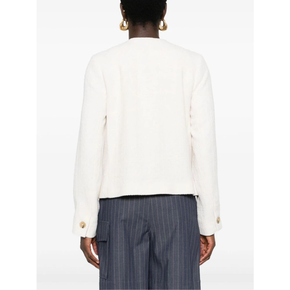 Upgrade je stijl met deze kraagloze ecru tweed jas van A.p.c.. Gemaakt van een katoenmix, met een knoopsluiting aan de voorkant, twee opgestikte zakken en een chique design. Perfect voor de modebewuste vrouw. Alleen chemisch reinigen. Sku: Cohaff 02885.