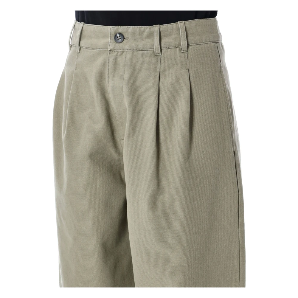 Stap in elegantie met A.P.C.'s Willow Pants in Grey Green. Gemaakt van 100% katoen, bieden deze broeken een hoge taille, losse pasvorm en stijlvolle plooien. Perfect voor elke gelegenheid, ze tillen je garderobe moeiteloos op. Met een vrij hoge taille, knoop- en ritssluiting, dubbele plooien, riemlussen, zijzakken en een losse pasvorm die smaller is bij de enkel. Model is 1, 70 m en draagt maat 36.