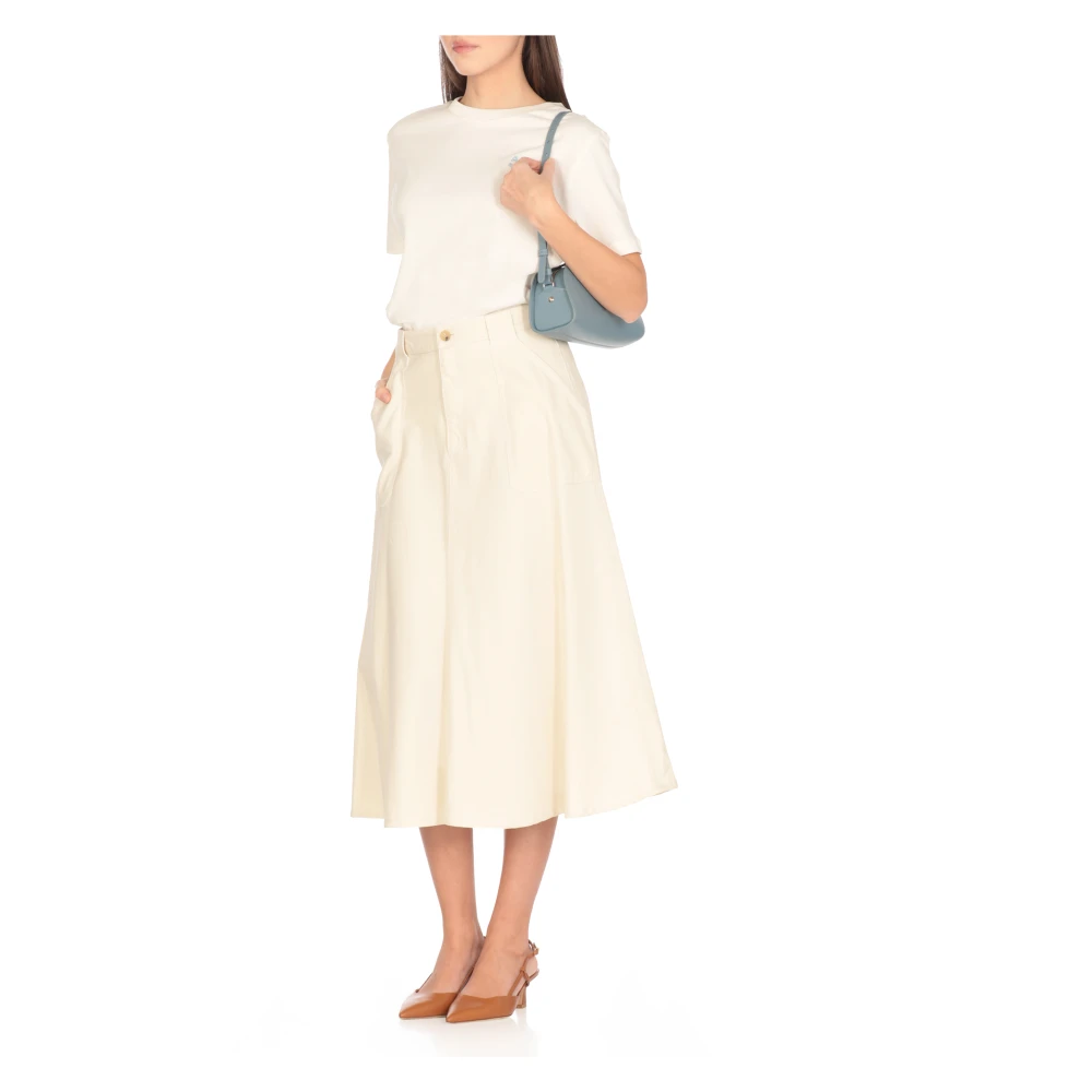 Upgrade je garderobe met deze ivoren A.p.c. katoenen rok voor vrouwen. Voorzien van riemlussen, een rits en knoopsluiting aan de voorkant, twee zijdelingse splitzakken en een uitlopende zoom. Het model is 179 cm lang en draagt maat 36.
