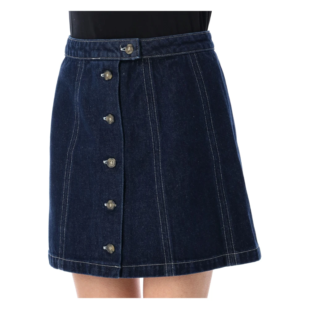 Upgrade je casual look met deze A.p.c. Pipa mini denim rok. De trapeze snit en lengte tot halverwege het dijbeen, samen met knoopsluiting en wit contraststiksel, zorgen voor een flatterende silhouet. Gemaakt van 100% katoen. Model is 1, 70 m en draagt maat 36.