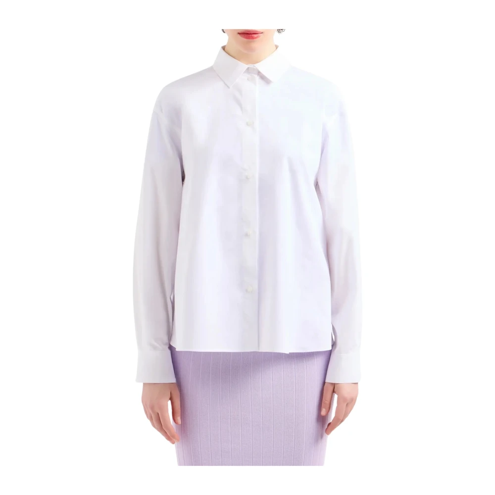 Emporio Armani dames overhemd met lange mouwen en borduursel op de achterkant. Gemaakt van 100% katoen