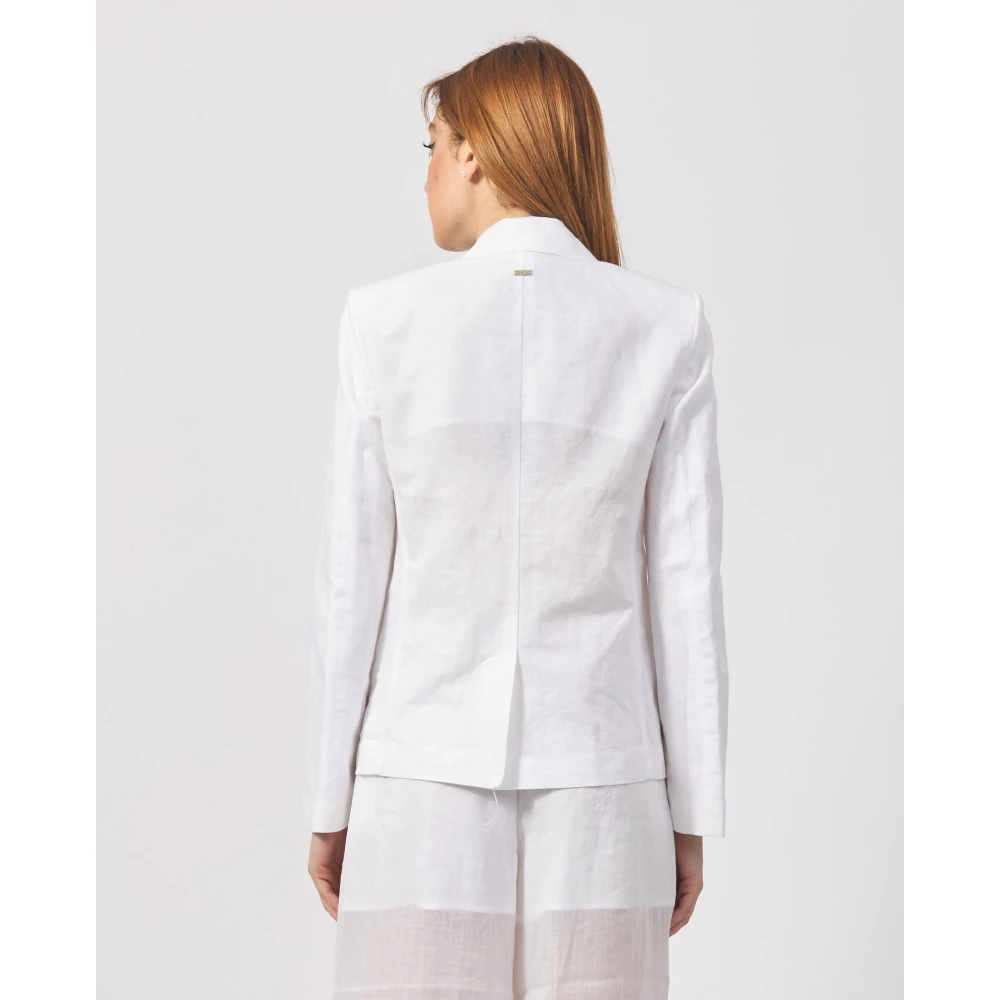 Upgrade je stijl met deze Armani Exchange damesblazer. Met een dubbele rij knopen, klepzakken en een klassieke revers. In een frisse witte kleur. Het model draagt maat S en is 1, 70m lang.