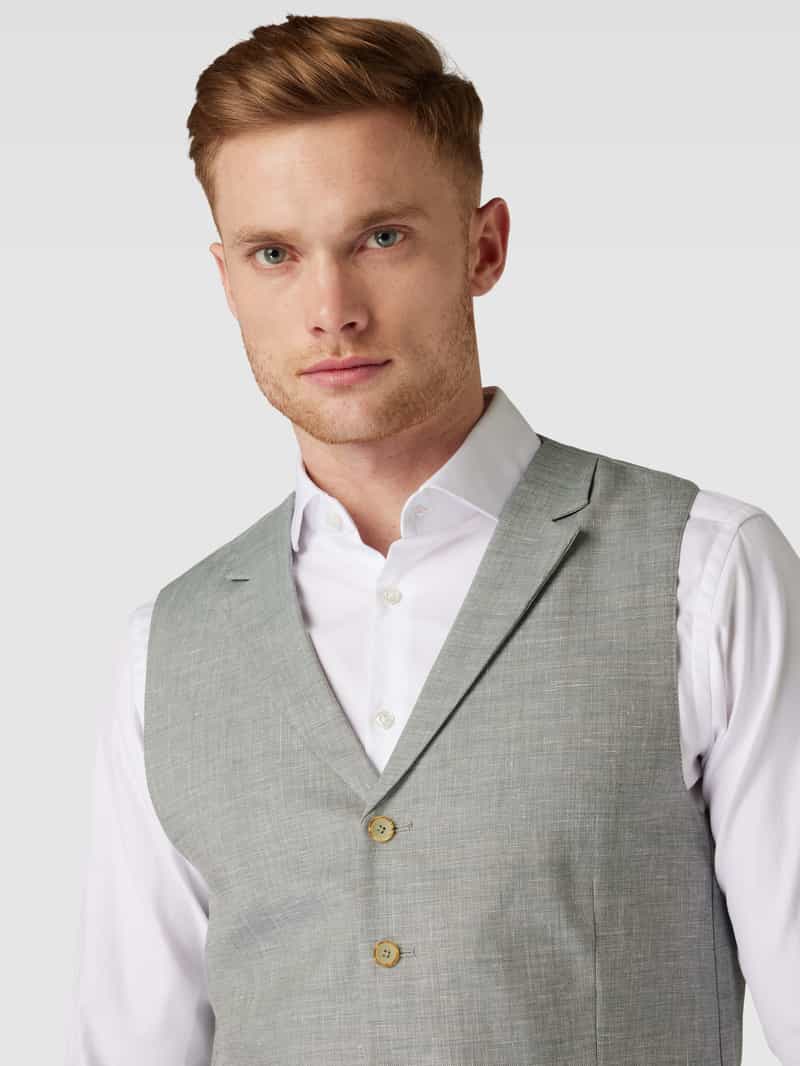 Linnen herengilet van atelier torino. Linnenmix met wol. Regular fit. Melangelook. Reverskraag. Knoopsluiting. Strookzakken opzij. Ruglengte bij maat 50: 68 cm