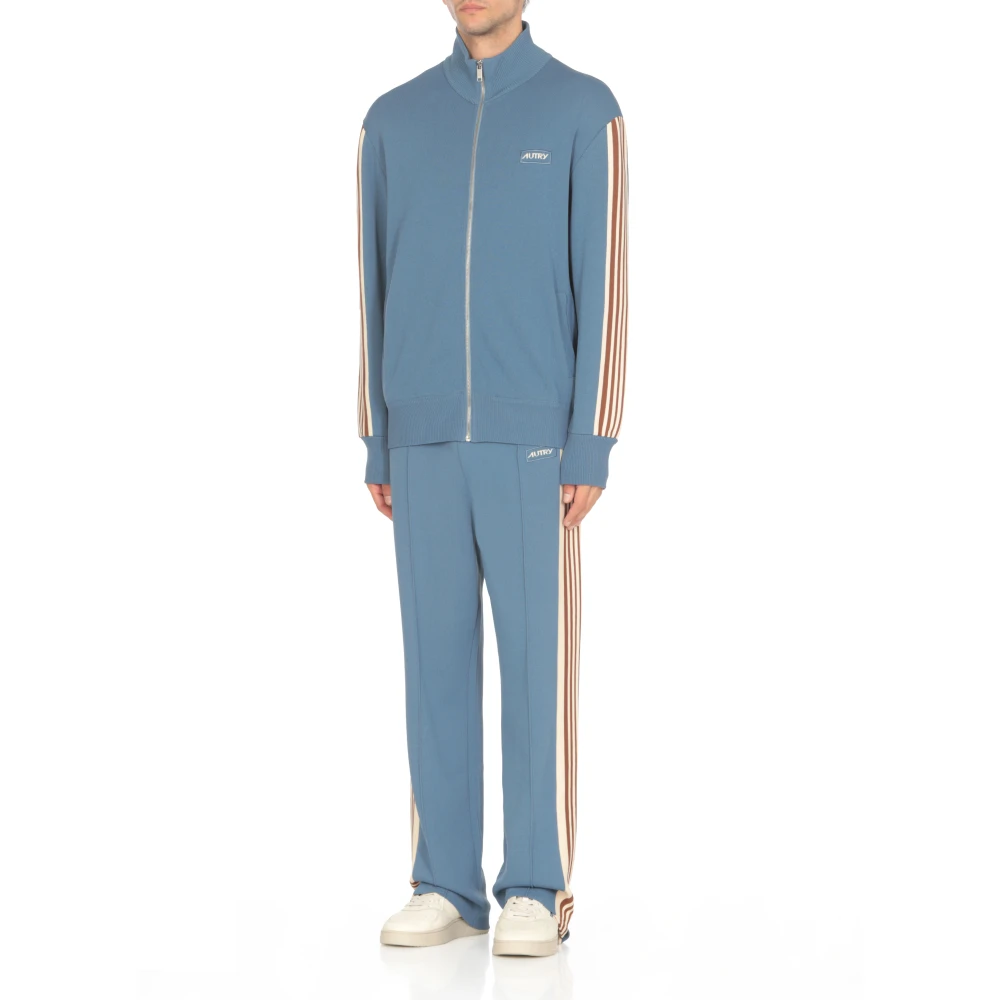 Blijf stijlvol en comfortabel in deze hemelsblauwe Autry viscose sweatshirt voor mannen. Met hoge hals, ritssluiting aan de voorkant, contrasterend kleurlogo, lange mouwen, elastische geribbelde afwerking, twee voorste steekzakken en twee contrasterende kleurbanden op de mouwen. Model is 190 cm lang en draagt maat L.
