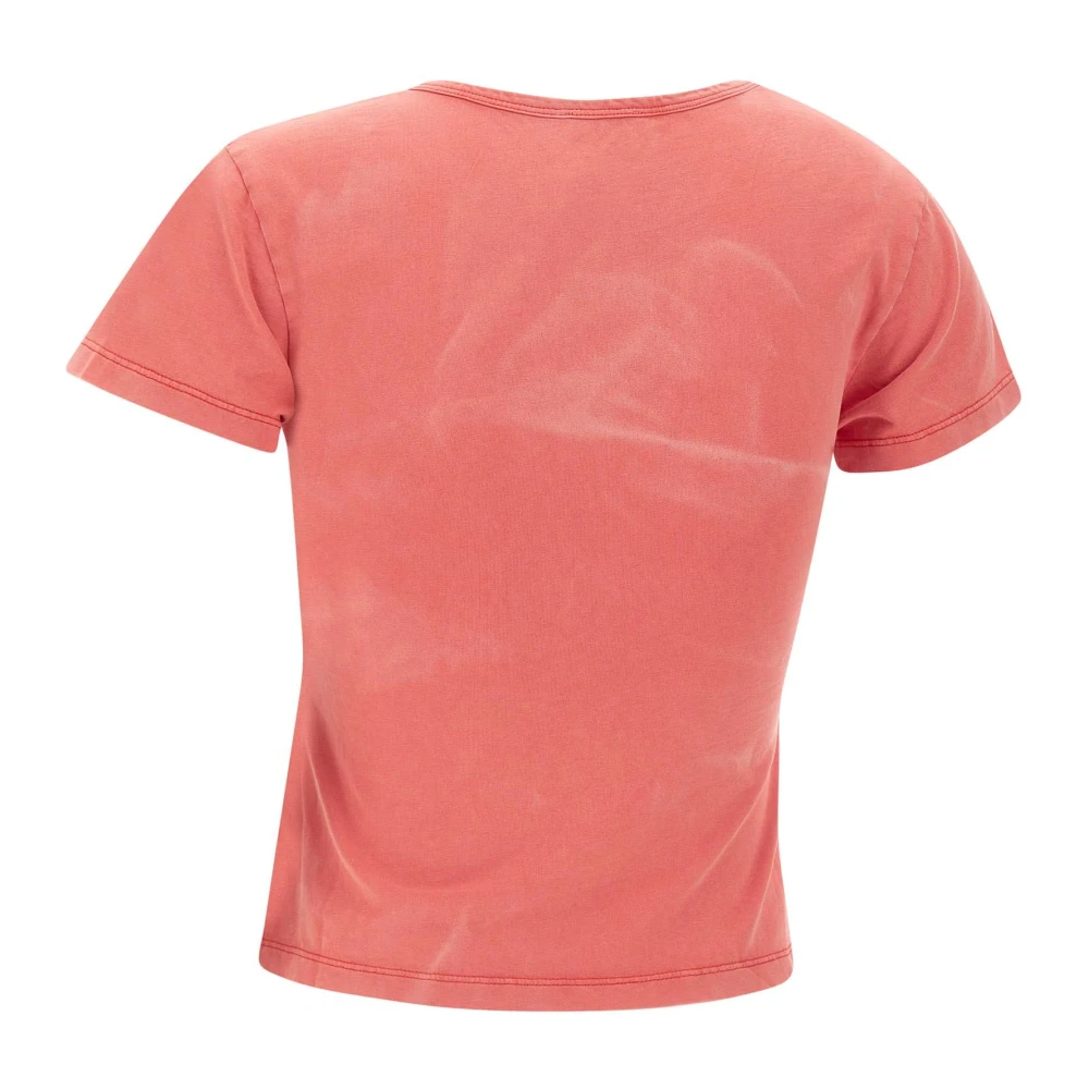 Upgrade je casual look met deze Avavav dames katoenen t-shirt in zalmroze met een trendy tie dye effect. Met korte mouwen, ronde hals, logo print op de voorkant en een regular fit. Gemaakt in Itali.