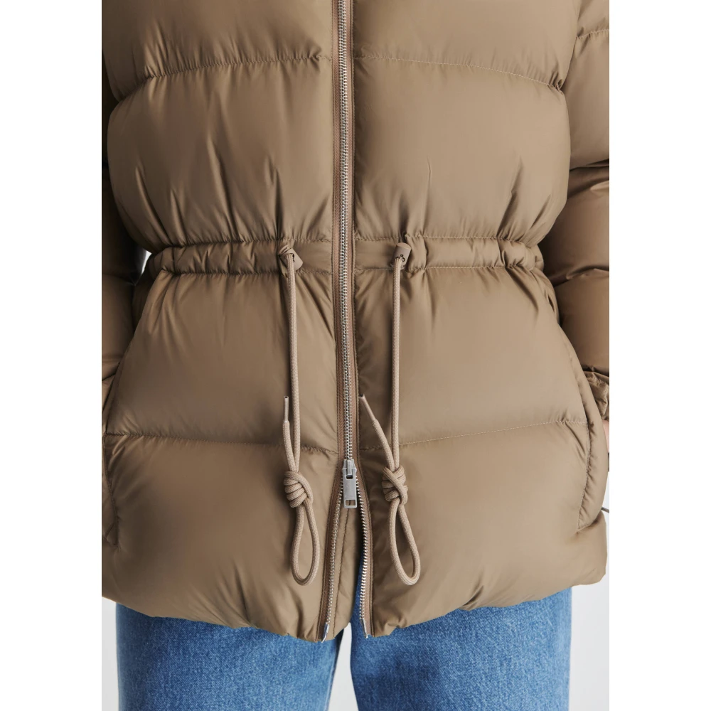 Het Rhode-jack is gemaakt van schaal en gevuld met hergebruikt dons. Het is ontworpen met trekkoorden in de taille, zodat je de pasvorm van het doorgestikte silhouet kunt personaliseren. Het model is 178 cm / 5'10 " en draagt maat S.