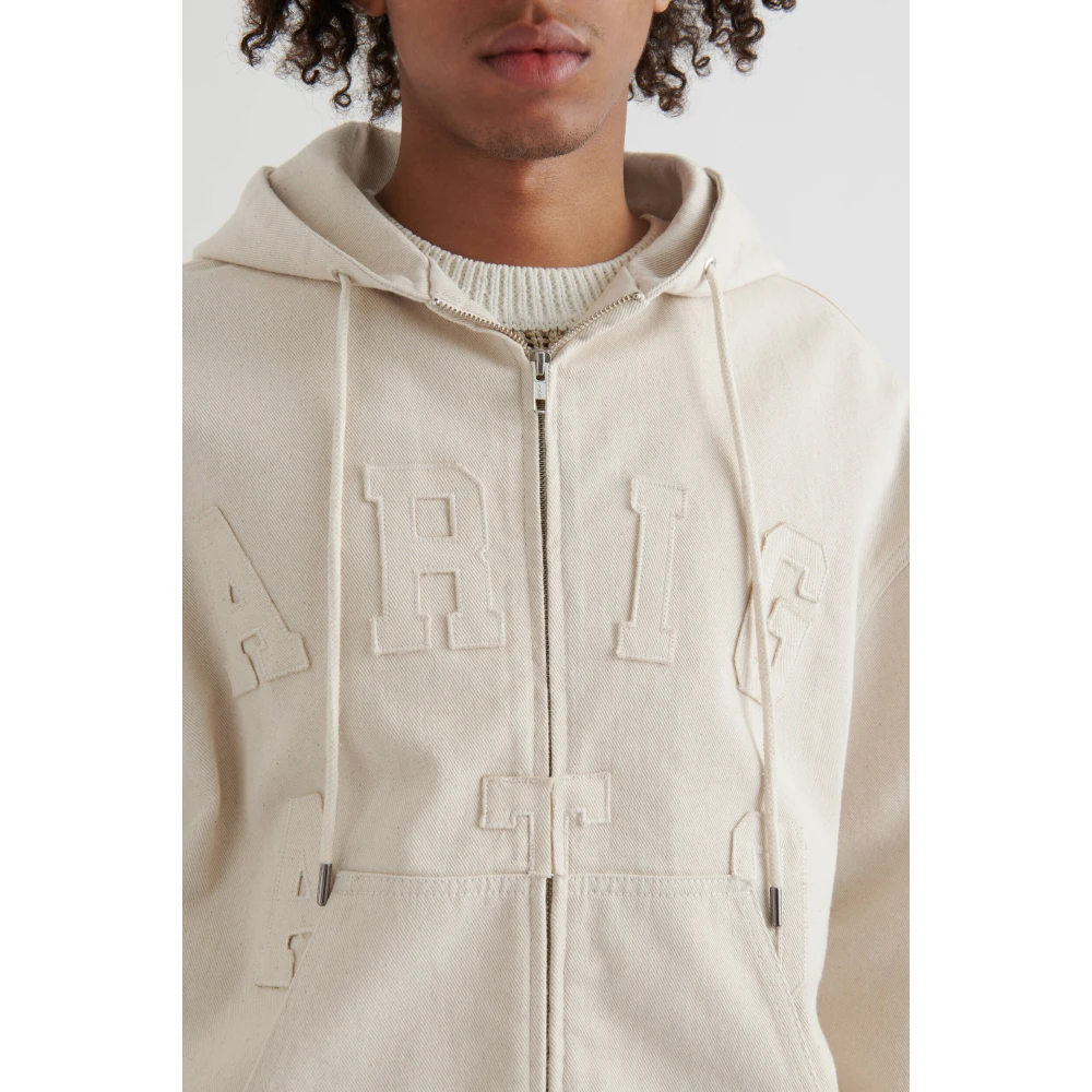 De Axel Arigato Venice Hooded Bomber Jacket combineert stijl en comfort met zijn katoen-denim constructie en contrasterende geribbelde boorden. Perfect voor casual uitstapjes, met applicaties van letters die `Arigato` spellen op de voorkant. Belangrijkste kenmerken: Ecru | Beige | Katoen-Denim | Contrasterende geribbelde boorden | Appliqu letters | Afmetingen en pasvorm: Model is 187cm / 6`1 ft en draagt maat M | Samenstelling en onderhoud: Katoen-Denim