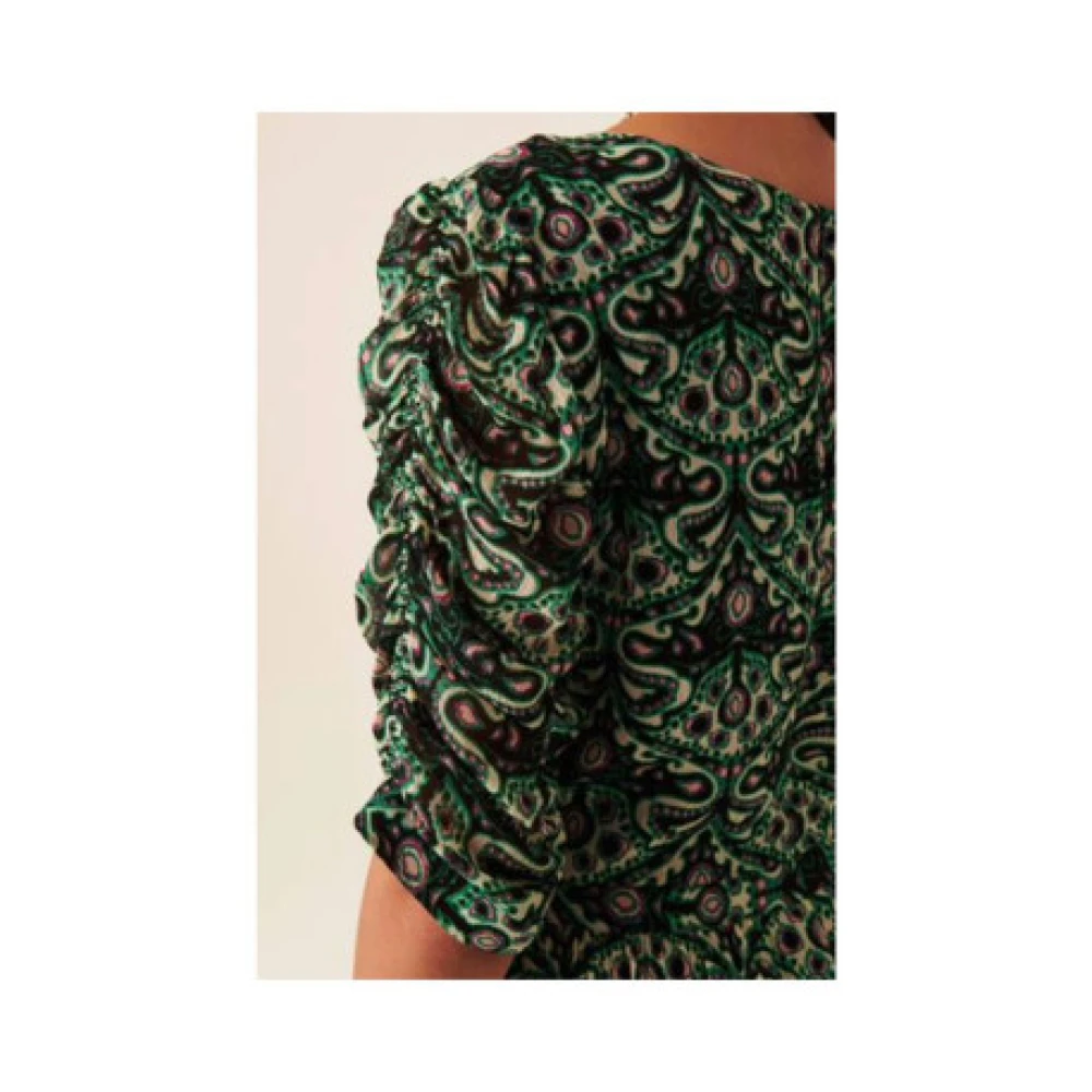 Ontdek de Ba&Sh Abstract Print V-Neck Jurk, een stijlvolle keuze voor de zomer met zijn opvallende groene abstracte print en elegant design. Belangrijkste kenmerken: Groen | Ritssluiting achteraan | V-halslijn | Korte pofmouwen | Verzamelde details | Lengte tot onder de knie | Afmetingen en pasvorm: Normale pasvorm | Samenstelling en onderhoud: Machinewas koud, droogtrommel laag.