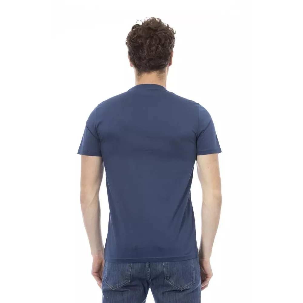 Upgrade je casual garderobe met het onberispelijke vakmanschap van Baldinini Trend. Dit stijlvolle blauwe T-shirt, gemaakt van 100% zachte katoen, heeft een chique frontprint die een vleugje elegantie toevoegt aan de klassieke ronde hals en korte mouwen. Perfect voor degenen die een mix van comfort en luxe waarderen in hun dagelijkse kleding. Materiaal: 100% katoen. Land van herkomst: MD. Kleur: Blauw