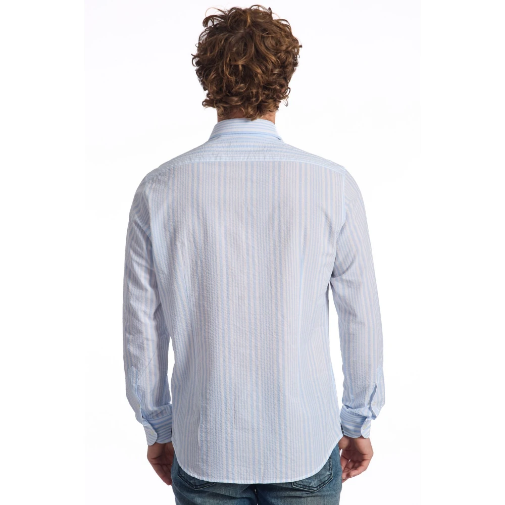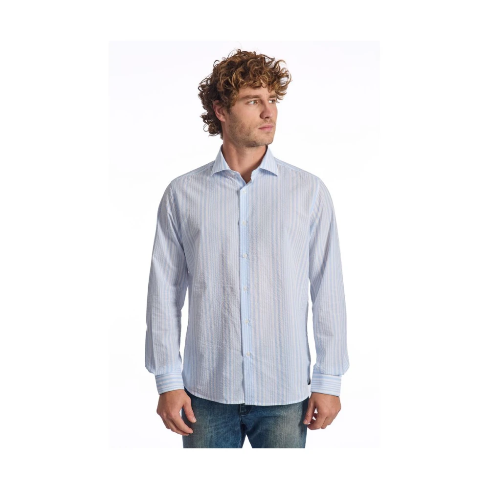 Baldinini Gestreept Overhemd. Lange Mouwen. Slim Fit. Franse Kraag. Knoopsluiting. Knoopsluiting Bij De Manchetten