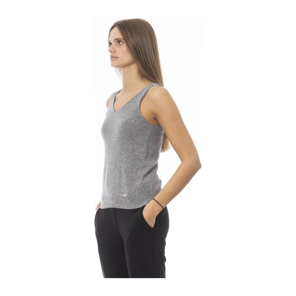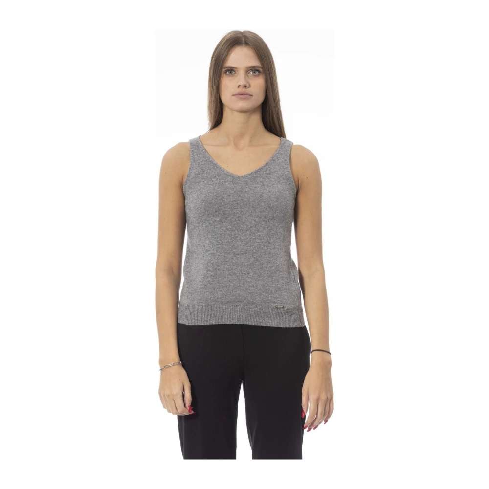 Baldinini Canotta Scollo V. Collo E Fondo Maglia In Costa Fine. Monogram Baldinini Trend In Metallo. Stijlvolle mouwloze top voor vrouwen