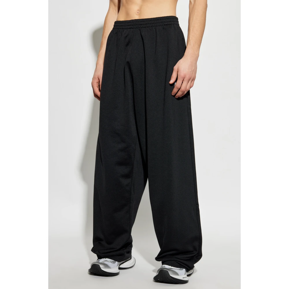 Maak kennis met de Broek met Logo van Balenciaga, die luxe en comfort belichaamt. Deze zwarte joggingbroek heeft een losse pasvorm en een stijlvol logo-detail, perfect voor dagelijks gebruik. Belangrijkste kenmerken: Zwart | Polyamide | Katoen | Elastische tailleband met trekkoord | Zijdelingse steekzakken | Wijde pijpen | Logo borduursel | Afmetingen en pasvorm: Losse pasvorm | Samenstelling en onderhoud: 64% polyamide | 36% katoen | Machinewas koud, droogtrommel laag