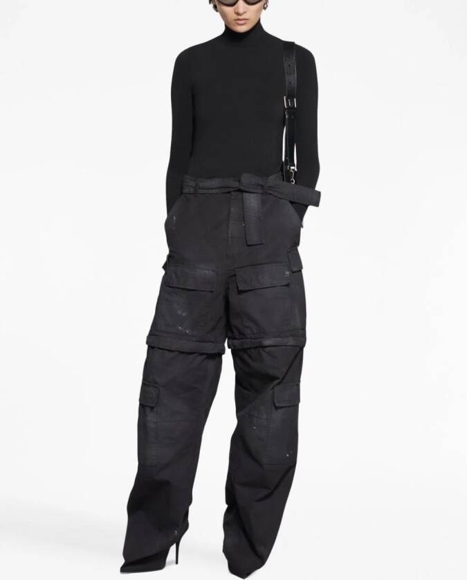 zwart verborgen sluiting aan de voorkant afneembare riem cargo zakken gerafeld effect