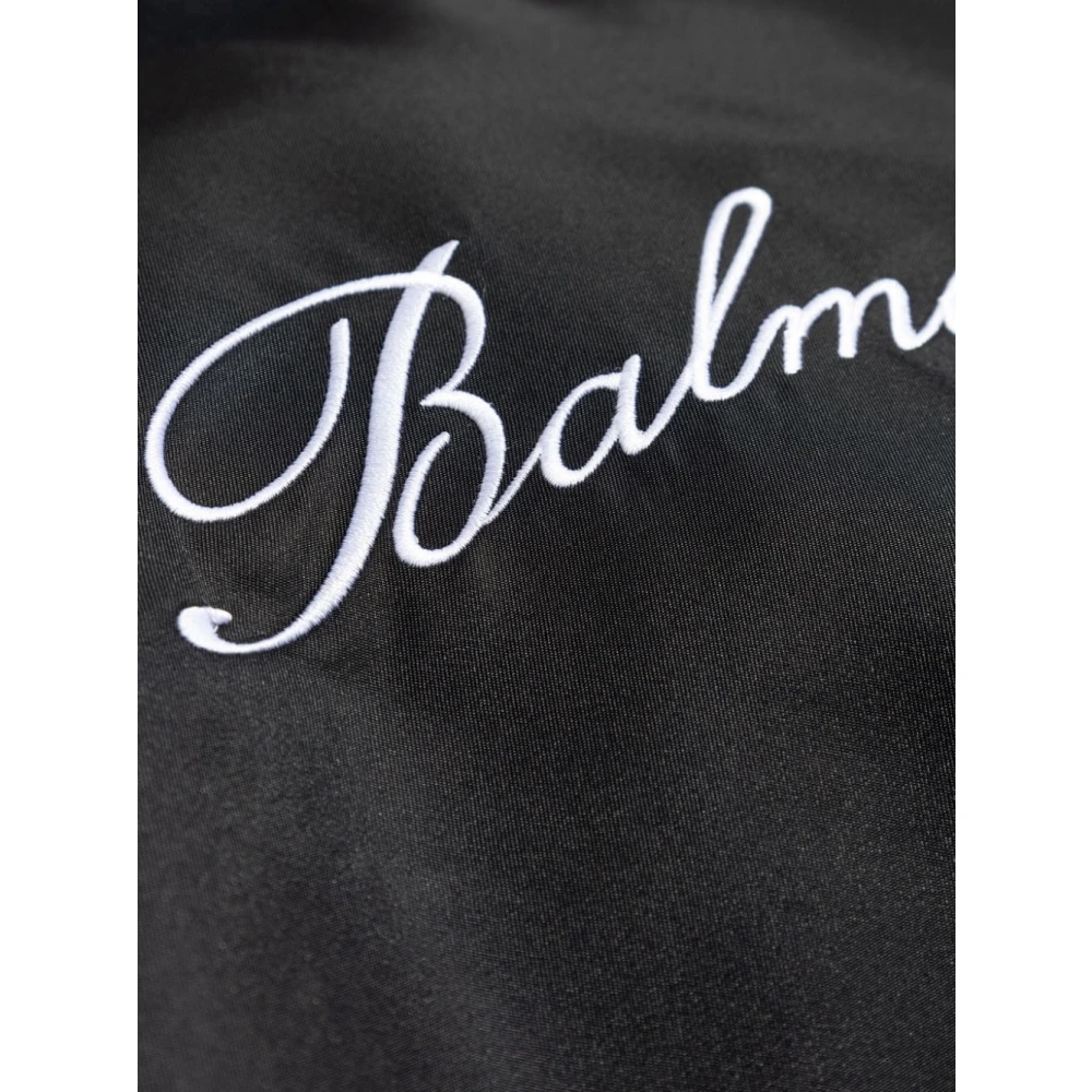 Zwarte Balmain bomberjack met wit geborduurd logo op de achterkant. Opstaande kraag. Ritssluiting aan de voorkant. Twee voorflapzakken. Lange mouwen. Elastische manchetten. Benadruk je streetwear-stijl elke dag en omarm de modieuze geest door deze zwarte Balmain bomberjack te dragen. - Balmain - Zwart - Geborduurd logo op de achterkant - Twee voorflapzakken - Mannen