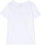 Wit, katoen, logoprint, metallic effect, ronde hals en korte mouwen .