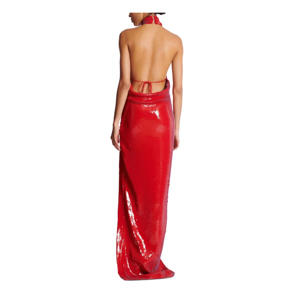 Lange paillet halternek jurk Hoge hals Voor split Onzichtbare zijritssluiting Hals sluiting met haken Gebonden aan de achterkant Lange, slanke pasvorm Model meet 179 cm en draagt maat 36Hoofdmateriaal: 100% polyester Gemaakt in Frankrijk Artikel: Ef 0Rp 148Xk 97